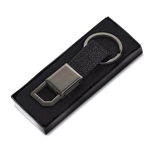 Chaveiro produzido em Liga de zinco, ferro e PU. Acompanha estojo.
